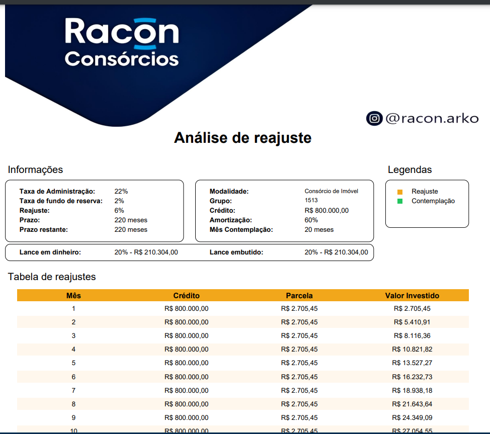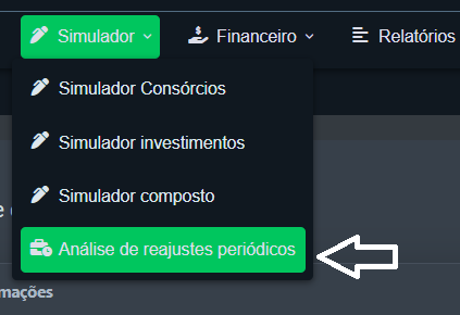 Agora inserimos as informações no simulador de reajuste para calcular os valores e a previsão solicitada.