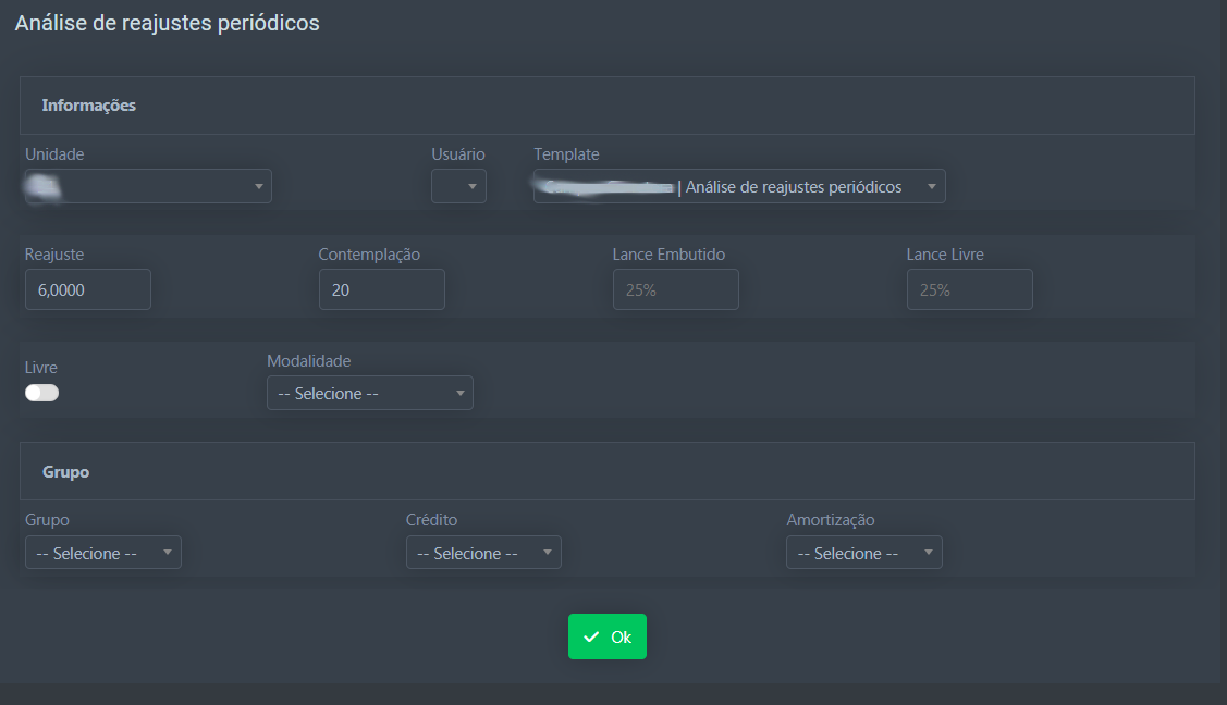 - Escolher as opções de grupo ou inserir o crédito livre..